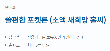 신한은행 비상금대출 쏠편한 포켓론 정보